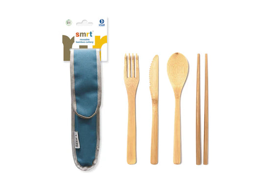 De SMRT bamboe bestekset is een perfecte keuze voor wie waarde hecht aan duurzaamheid en gebruiksgemak. De set bestaat uit een vork, mes, lepel en eetstokjes, allemaal vervaardigd uit hoogwaardig, duurzaam bamboe. Dit materiaal is volledig vrij van BPA en ftalaten, waardoor je niet alleen kiest voor een milieuvriendelijk alternatief, maar ook voor een veilige eetervaring. Bamboe is licht, sterk en biologisch afbreekbaar, wat deze set uitermate geschikt maakt voor outdoor activiteiten, picknicks, kamperen of reizen.