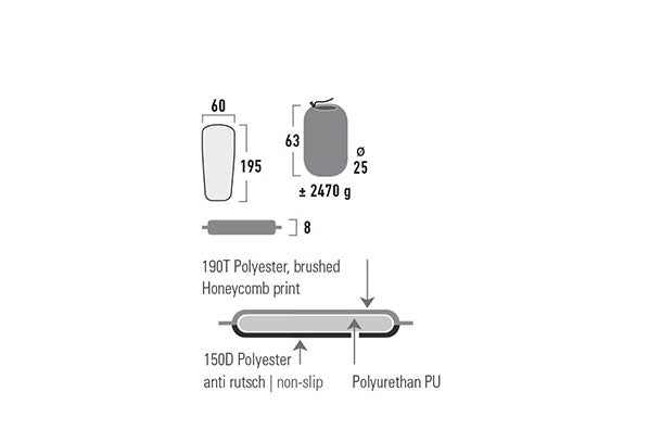 De dynamische trapezevorm zorgt voor eenvoudig gebruik en bespaart gewicht, terwijl de speciaal ontworpen "wave cut" bovenlaag zich perfect aanpast aan je lichaam voor extra comfort én gemakkelijk op te rollen is. De bovenkant is gemaakt van hoogwaardig, anti-slip en huidvriendelijk geborsteld polyester met een technische honingraatprint, terwijl de onderzijde bestaat uit duurzaam 150D anti-slip polyester voor extra stevigheid op ruwe ondergronden.